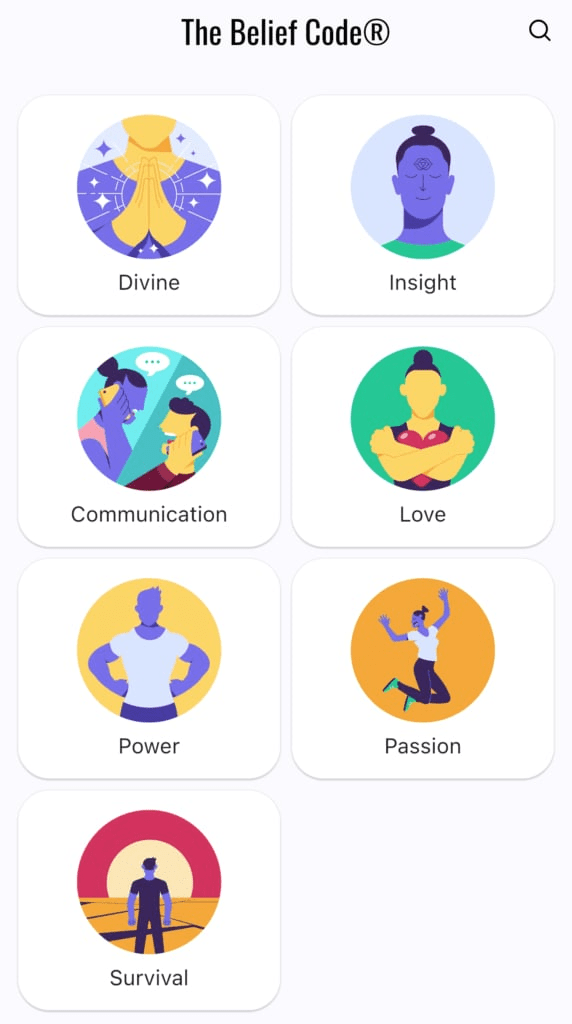 The Belief Code in the app explains that “A belief is a subjective view held by the subconscious mind, determining what is perceived as true or false, right or wrong, and acting as the filter through which we experience life.”